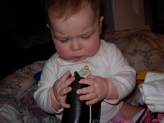 The Usticks have all been battling colds lately. Avery first, then me and now Brent. Boo! We've been hanging out at home trying to rest up the past few days. We did travel up to Williamsburg this past weekend to stay at my parent's house. Brent got together with some of his guy friends from college for a good chunk of the weekend, and Avery & I spent lots of time with Mom and Dad. It was extra special because it was my Dad's birthday on Saturday. We celebrated with birthday cookies... yum! You can tell Avery was under the weather from how rosy her cheeks are!